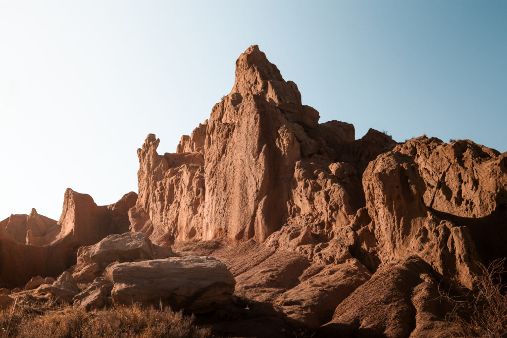 The south shore is quieter and more rugged, with dramatic canyons and natural features that make it a rewarding part of any Kyrgyzstan itinerary. Firstly, you’ll find the Ak‑Say Canyon (Canyon of Forgotten Rivers), a remote, rugged and offering breathtaking views and a sense of solitude. Another standout attraction is Skazka (Fairytale Canyon), named for its towering, wind-sculpted rock formations in vivid reds and yellows that feel almost unreal in the evening light. Another must-see is the Barskoon Waterfall, a stunning cascade set in a narrow gorge, perfect for a short hike.