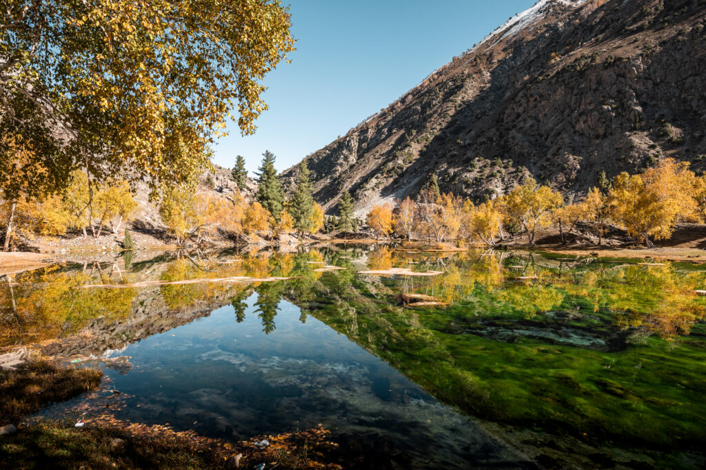 Blue Lake in Naltar Valley in Autumn